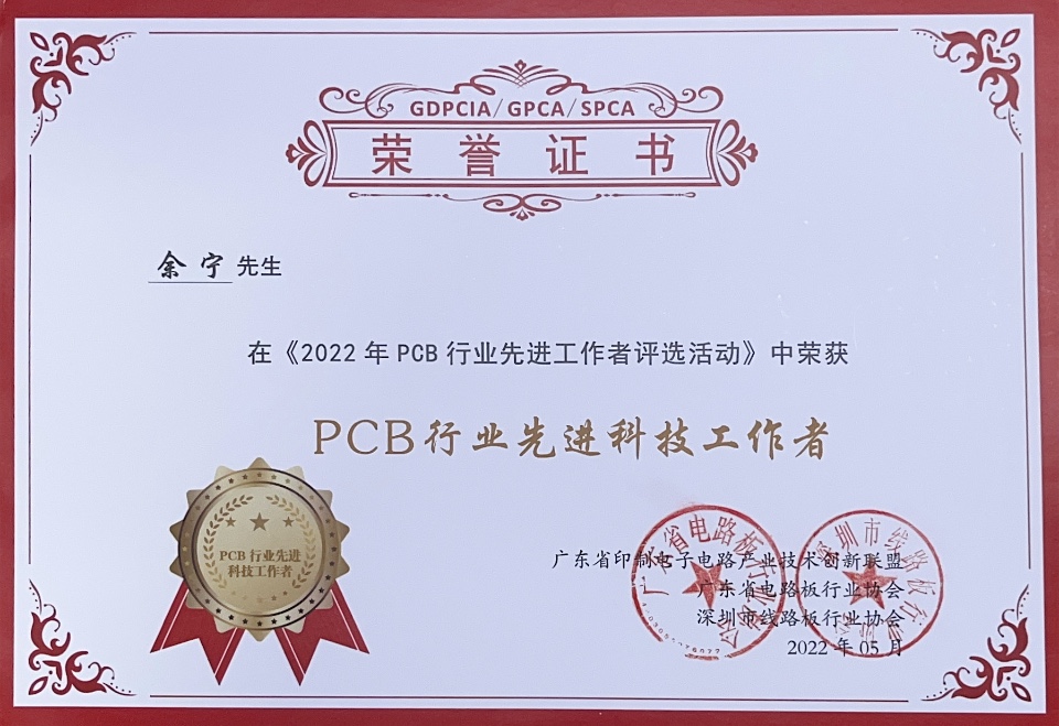 喜訊 | 華秋電子工藝經理余寧榮獲2022年“PCB行業(yè)先進科技工作者” 稱號