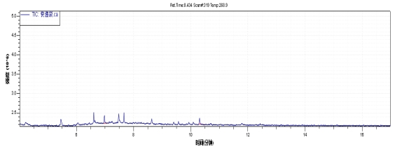 選取某品牌快遞包裝袋進行鄰苯二甲酸酯的快篩測試,譜圖和檢測結果如下: